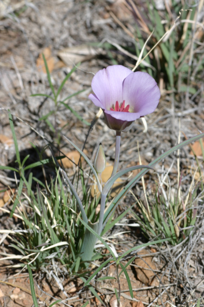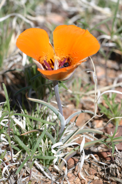 A yellow form of Calochortus kennedyi grew near my driveway in solid clay soil. Oddly, it seemed as if planted in a row. Within 1000 feet of my property a patch of mixed calochortus bloomed, including an orange form of C. kennedyi and white and pink forms of what I believe to be C. ambiguus. I was never quite certain of their identity. I didn’t have the heart (or strength) to attempt transplanting any of these to the rock garden; it would have taken a pickaxe. They were an inspiration where they bloomed!