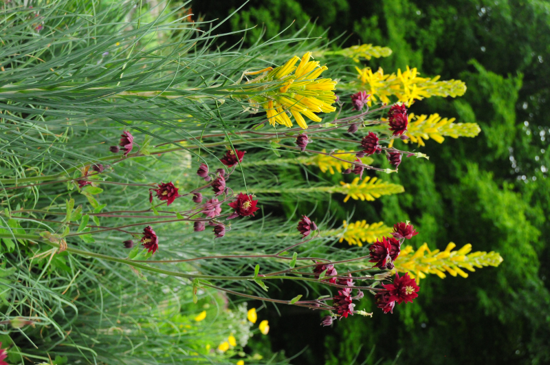 Asphodeline lutea, aka king’s spear, has been a centerpiece of the garden since the first year. It produces a clump of blue-green rosettes that transform into robust stalks of yellow flowers in early June. Each rosette dies after blooming, but there is a constant supply of pups. I started mine from the 2016-17 NARGS seed exchange.