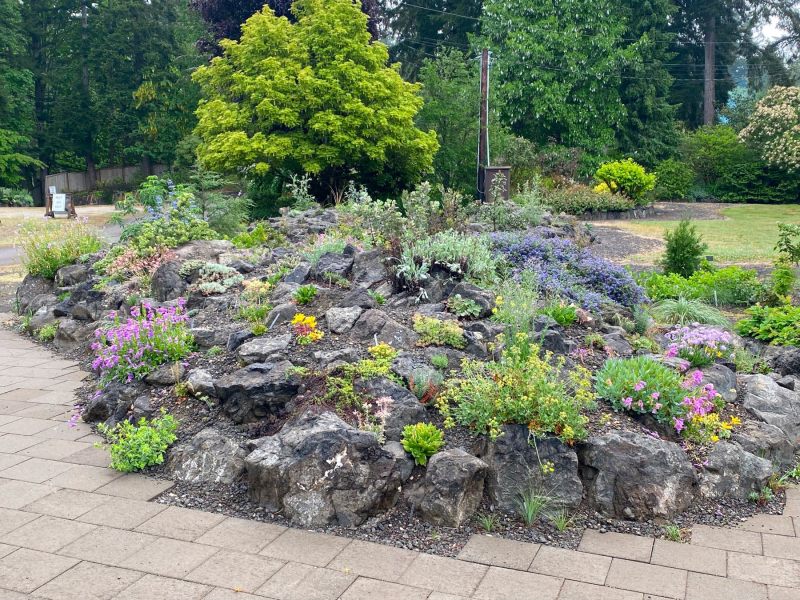 Heronswood is not known for rock gardening. This 15-acre botanical garden on the Kitsap Peninsula in western Washington State is more often associated with the activities of its founder, the plantsman Dan Hinkley, and the far-flung plant menagerie he built through numerous expeditions around the world. Much of the Heronswood campus is covered in a native tree canopy – Douglas fir, grand fir, western red cedar, and hemlock – creating a cool, shady environment in which Dan’s collections of hydrangeas, mahonias, woodland lilies, and ferns thrive. Not an obvious location for a rock garden! And yet, in the winter of 2020/21, a rock garden began to emerge in a corner of the Heronswood parking lot.