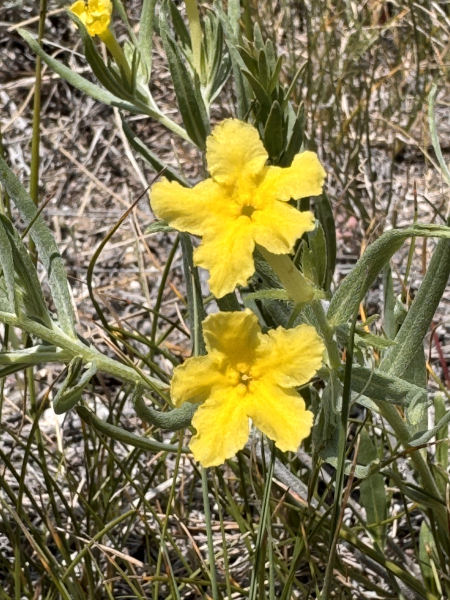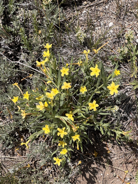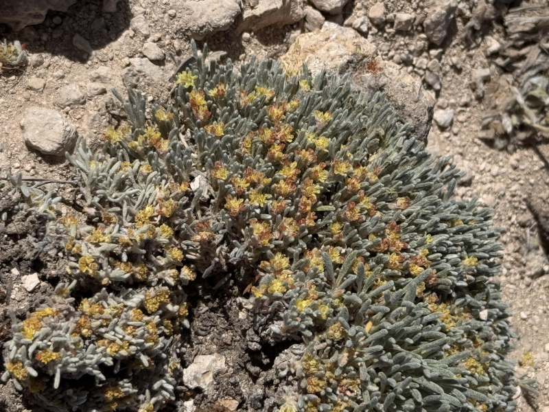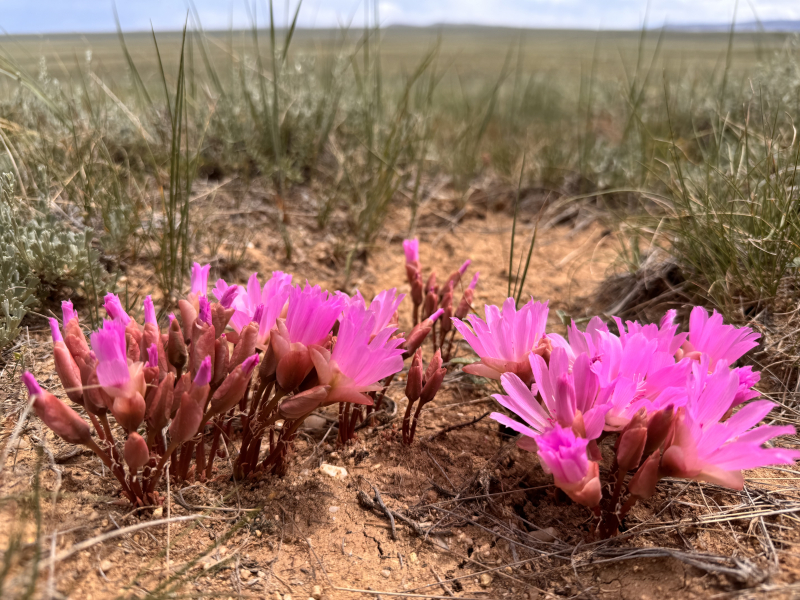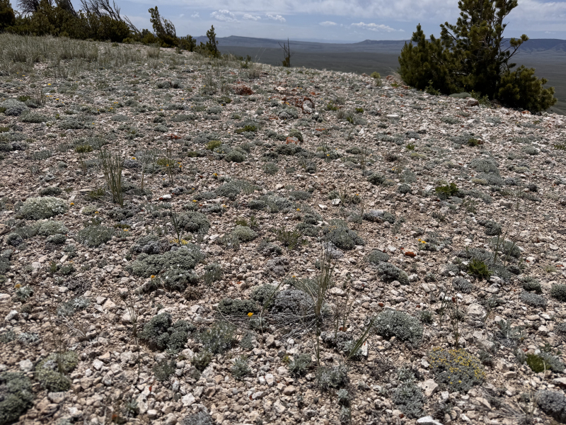 Among the very nice field trips at the NARGS Annual meeting in Cheyenne, Wyoming, was a day at Chalk Mountain (Carbon County). This is a low, flat-topped mountain with friable limestones and sandstones. It was a pleasure to be introduced to the botanical delights of this mountain by our trip leader, Bonnie Heidel. You might ask why Chalk Mountain, at barely 8,000 feet (2400 m) elevation would be so interesting when there are so many mountains in the area that reach high into the alpine. Chalk mountain, as the name suggests, has limestone derived soils, which often produces a rich flora, sometimes including rare and local species adapted to the highly calcareous soils. These plants are of particular interest to me as my home garden is in an area of calcareous soils. There was another draw. Southern Michigan, where I live, has quite hot summers, so high elevation alpines are hard to manage. Though Chalk Mountain is much drier than southern Michigan, at least that is only one strike against us easterners thinking about growing some of these plants.