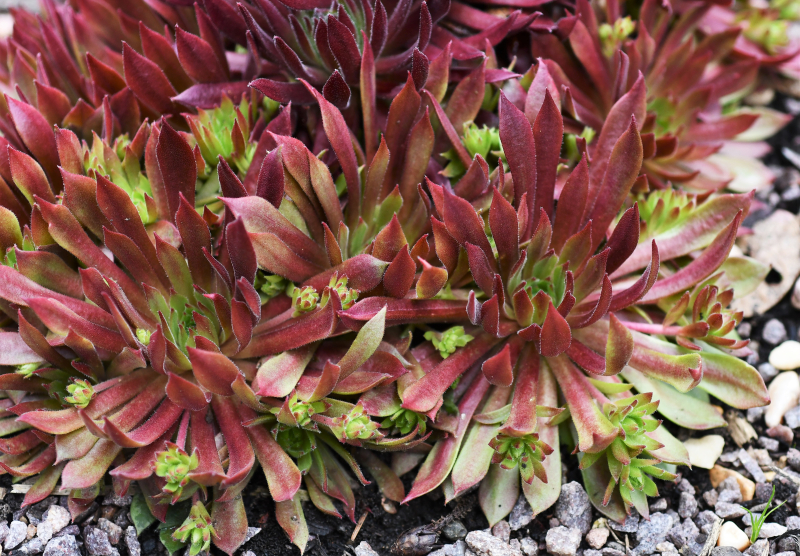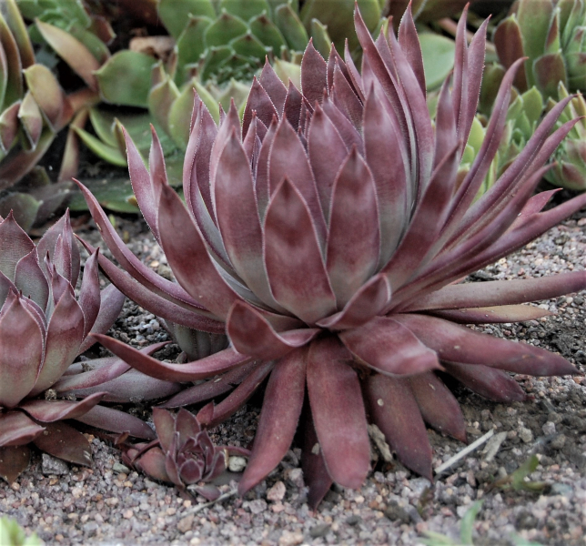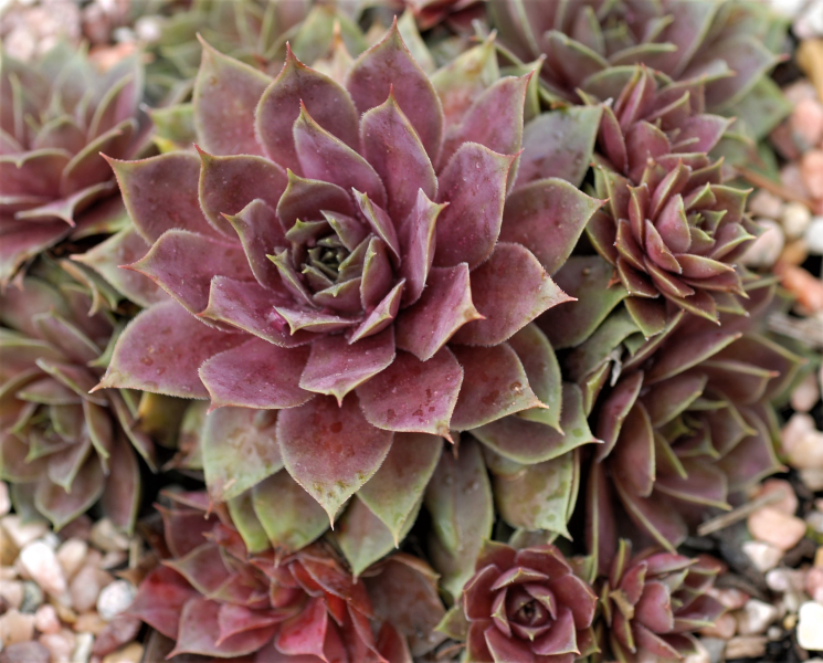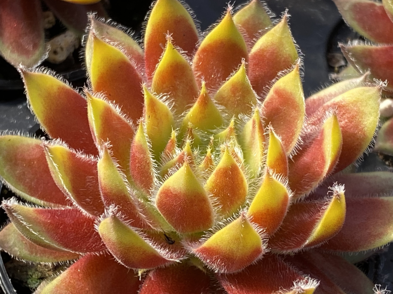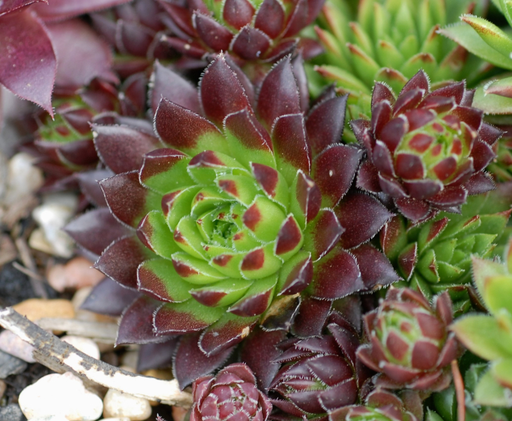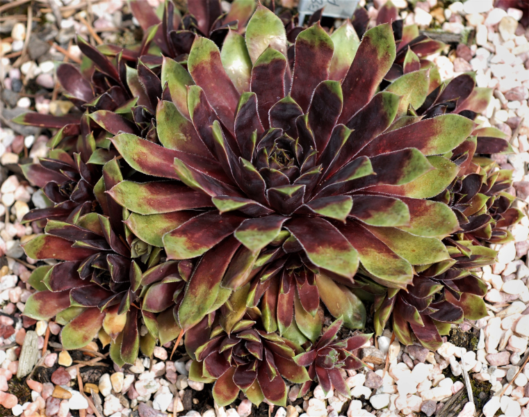 When I stated breeding sempervivum in 1964, the best coloration of the rosettes was early in the spring which sadly faded to uninteresting greens and dirty tans. Helen Payne, the matriarch of the “semp” movement here in the U.S., referred to this early spring phenomenon as “high color”. This of course implies that there is a time of “low color” too. A semp garden in the mid 60s in July or August was of much less interest than in the spring.