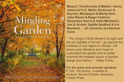 all. But this is also about a gardener's mind reaching into and making comparisons with other arts. Bixley's musings include garden history, as well as analogies with what are generally termed the "fine arts" (architecture, literature, music) and points out that they have in common a basis in their need for structure and, quite possibly, critiques (#s 85, 87).