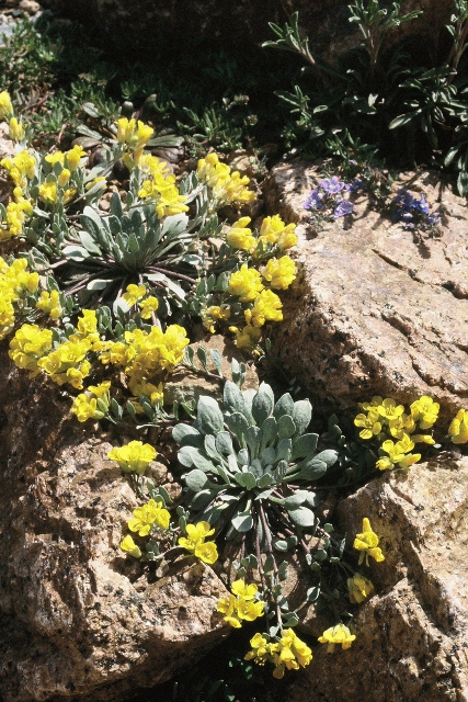 Only named in 1981, Physaria alpina is the queen of Colorado physarias. This shows it in a garden setting where it can last three or four years. The flowers are a really lovely deep yellow-orange, and the seed pods decorative. I think there is an alpine species in the Pacific Northwest...otherwise these are mostly plants of desert/steppe and montane screes.