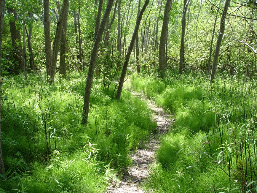 Woodland trails- large stretches of various species or phases of Equisetum.. almost/no one on these small trails
