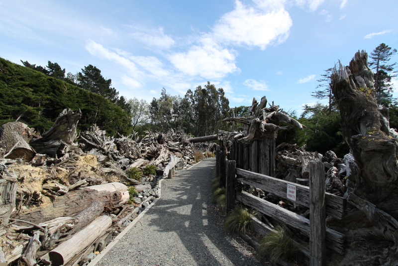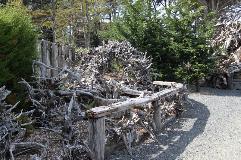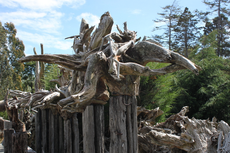At a distance the site looked like the after effects of a logging operation however as i got closer i started to appreciate the skilled sculptural work especially the use of the smaller stumps with roots for the crowning of numerous poles.