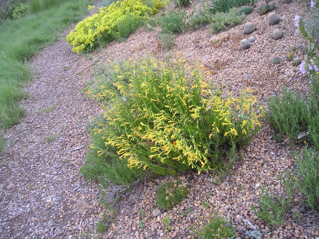 This is 'Shades of Mango'--that incredible hybrid produced (I think) by David Salman at High Country Gardens. He sent it to me years ago, and I got a miserable orangy thing that disappointed (and wondered if he'd lost his mind). Then I got husky plants from Kelly Grummons at Timberline and planted them out. For year or two they thrived on my dry garden, and then started to go haywire--parts of them turning orange rather than mango shades, and finally reverting to generic and not terribly exciting pinifolius...