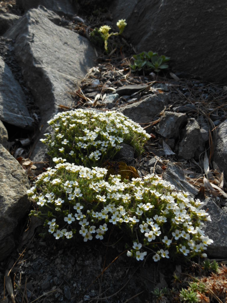 Draba5; not all Drabas are yellow. Draba x salomanii as sold by Woodland Rockery (long defunct) has persisted. It is compact and small. I've never seen a seed on it. There are others here: D.bryoides is putting on its little show just now. There's even a fuzzy I, unbeknownst at the time, bought as Androsace tapete. Such magnificent little things are'nt they?[tt][tt][/tt][/tt]