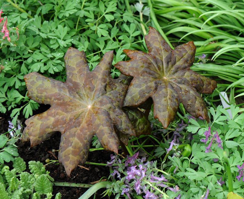 Two years ago I picked up a Dysosma pleianthum X veitchii...it is doing very well and for the first time has buds this year. Hopefully it will be open in the next 2 weeks. Perfect camouflage foliage!