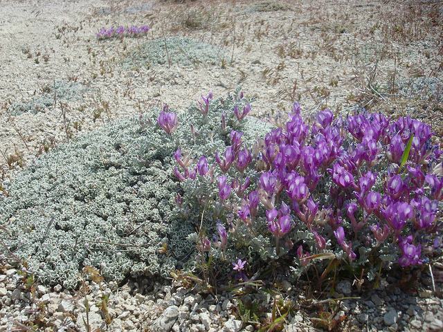 The last picture in this set is of Eriogonum ovalifolium var. williamsiae intertwined with Astragalus newberryi in native habitat