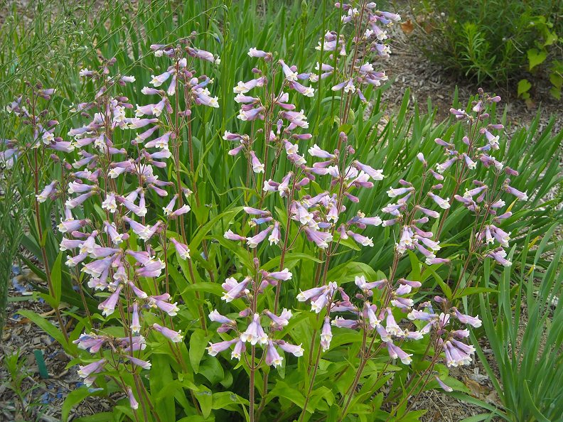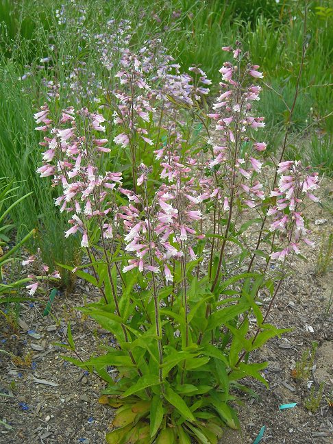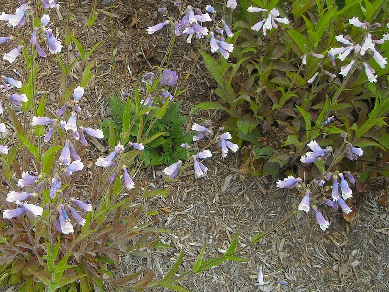 However, I'm not talking about the dwarf variety today, just regular Penstemon hirsutus, if there is such a "regular" thing. In its many guises and forms, it is always a pleasant, highly serviceable plant, flowering for many weeks early to mid summer, often with rebloom, and then finishing with surprisingly good fall foliage. I do not need to plant it in my garden, it just seeds about freely here and there, with the potential of becoming pesky in an immaculate garden, but my garden is not so fussy so the spires of soft color are welcome, although some judicious thinning of unwanted seedlings is necessary.