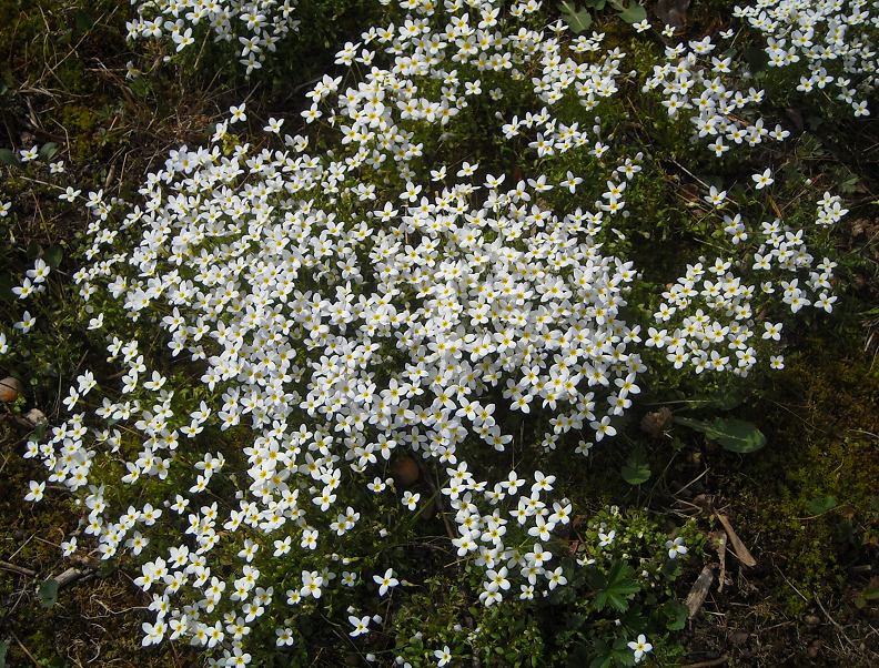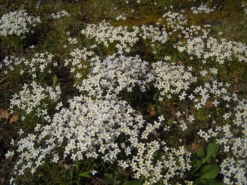 This message is a photographic essay on one of my favorite plants, Houstonia caerulea (Hedyotis caerulea), common name Bluets, a member of the Rubiaceae.