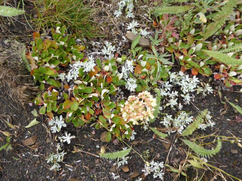 Rhodiola integrifolia; Ramaria(?) fungus; Sedum lanceolatum; Eriogonum umbellatum v. alpinum (x2); Campanula rotundifolia;