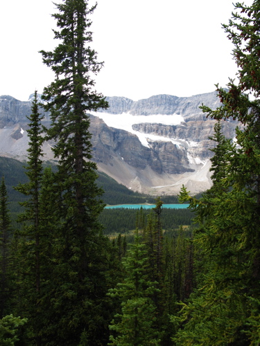1, 2, 3) After about 300m(?) elevation gain, the trail opens up for views of Bow Lake and Crowfoot Glacier, and in the other direction, Mount Hector, Hector Glacier and Little Hector.