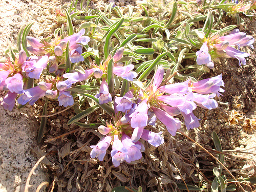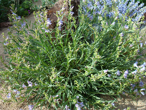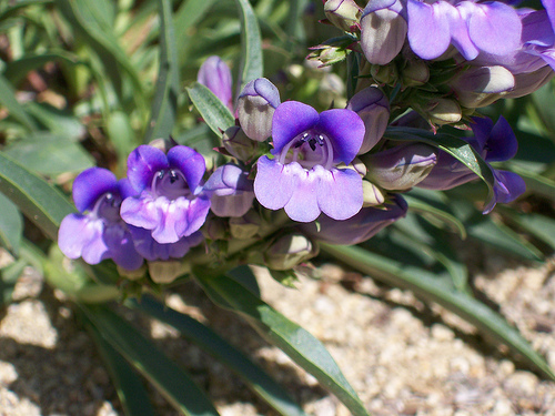 Penstemon speciosus is variable in appearance. Lower elevation forms have an open airy appearance, with greener coloration to the leaves. The higher forms are low, condensed with denser inflorescence,and a gray cast to the foliage. At altitudes of around 8000'-9000' around Lake Tahoe I have come across very dwarf forms may be six inches tall with gray foliage. Flower color varies some but blue through blue/violet are what I encounter most often. I do have one plant that has a pink hue.