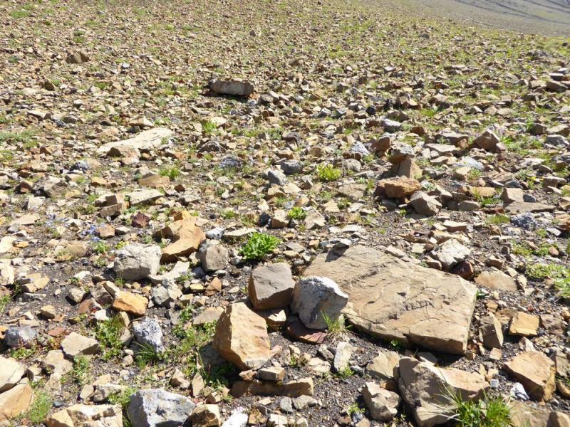 An new one for me this summer, Phacelia hastata: It was growing in stable talus slopes, at the base of the steeper slopes shown in the second photo, below: It's not the showiest Phacelia but it's always interesting to see (or notice?) something new. Family, Genus, Species