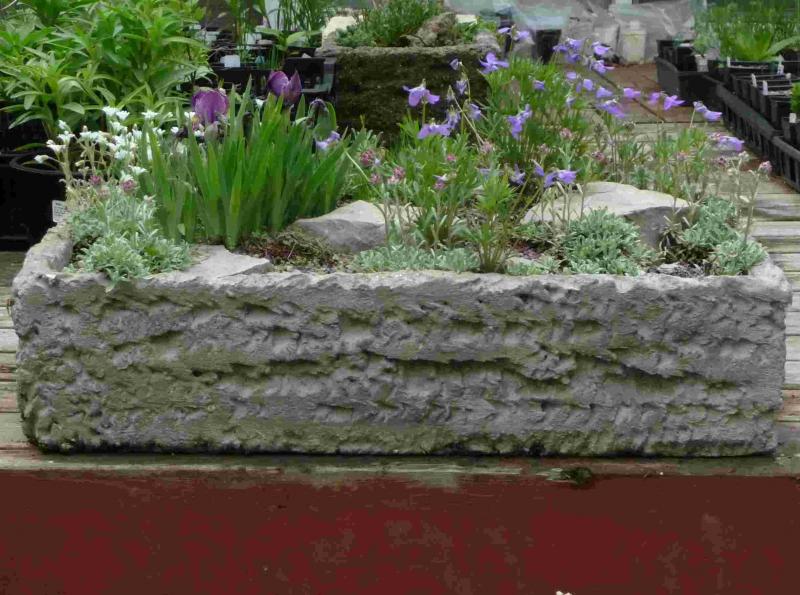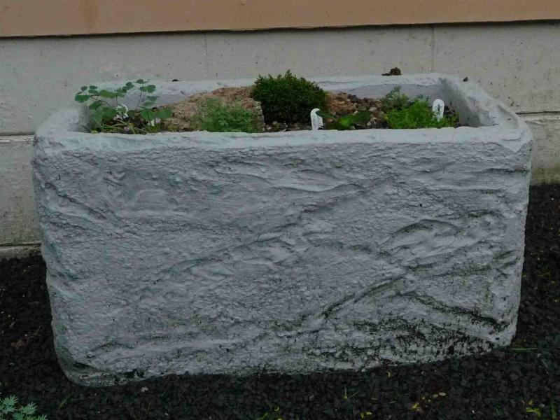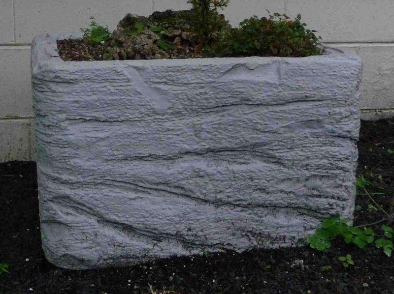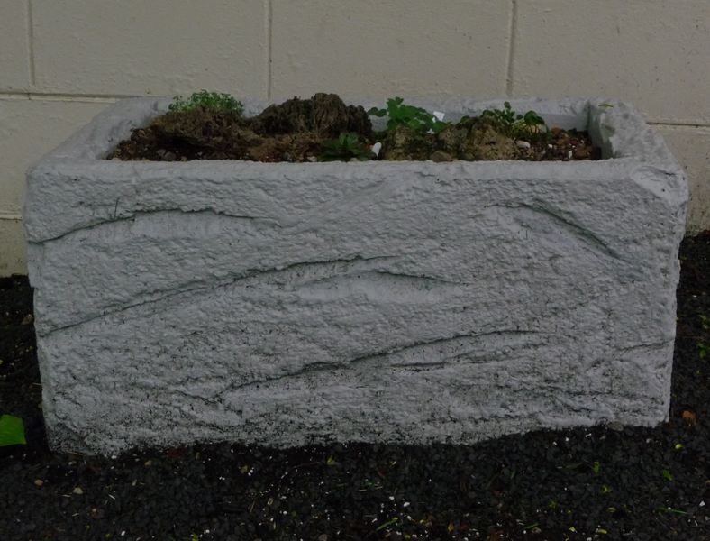 In a nutshell, a chosen form's surface is roughened in whatever fashion by physically scratching and gouging with a favorite tool, the purpose of which is to mimic natural rock or whatever is desired. The surface is heated to solidify the roughened exterior and prepare it for painting, and then painted. But let the specifics of this method be for another topic. Here I want to show some newer ideas that have emerged since Ian Young first invented the very versatile styrofoam trough concept.