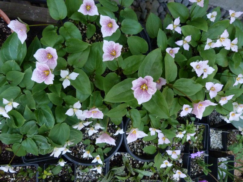 Though not as many as in years when I wield a pollinating brush, I have Trillium rivale seeds to share. There may be pink ones or white ones, some with red streaks through the flowers, and some with nice markings on the leaves. Heights range from 5 to 8 inches. It's a random sampling, I'm afraid. Send email if you are interested.