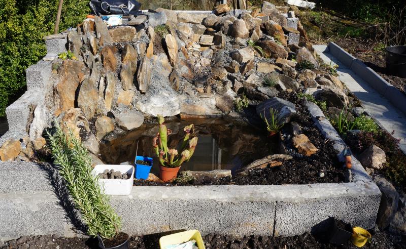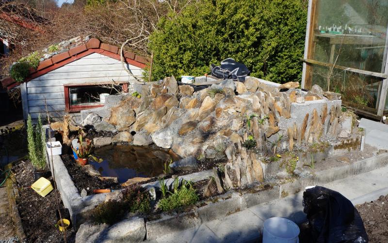 Lacking proper habitats for rock plants on my woodland I decided to construct a place and here is the result. Not quite finished yet but ready to put the first plants in place.
