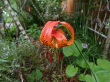 This lily bloomed for the first time this year from seed. Of course, I've lost the label. It resembles Lilium pardalinum but the leaves are wrong. Can anyone supply a name? Thanks! Plant Identification