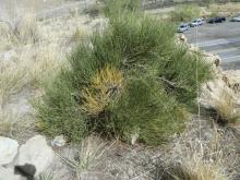 Ephedra viridis, Mormon tea, was very common too; this individual shows a golden-foliaged sport: