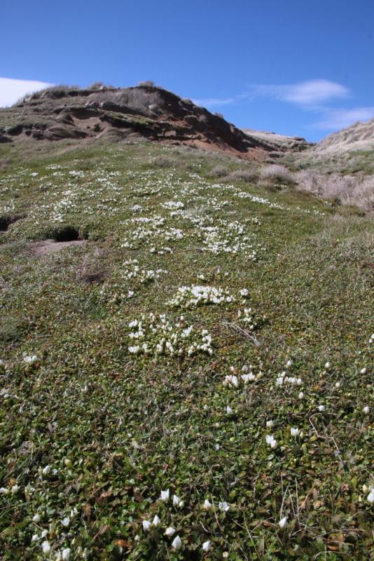 Mon, 02/24/2014 - 2:17amThe Omaui/Three Sisters dune site is unique. It has a number of rare species in particular Gunnera hamiltonii ( six individuals (clones) known in the wild). There was one patch (clone) at Omaui. Raoulia hookeri is usually found in subalpine river beds but there is a coastal form which may be distinct that occurs sporadically at various localities round the southern coast. It is abundant at Omaui. On the southern coast of the South Island a number of subalpine species mainly bog species descend to sea level. In most places round New Zealand the native coastal vegetation has been heavily modified and replaced by exotics. The native sand binding sedge Ficinia spiralis has been almost totally replaced by marram (Ammophila arenaria). Lupinus arboreus from California is dominant over large areas of dunes. Coastal dune areas where indigenous plants still form a significant part of the vegetation are now very rare.