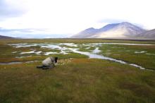 Breinosa, at about 600m it isn't many plants. The rocks are part of a vast block field. Up here only mosses and lichens grow (and the Svalbard poppy).