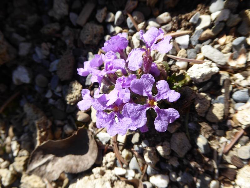 Saxifraga bronchialis is still in bloom in the boulder field, with Aquilegia flavescens: